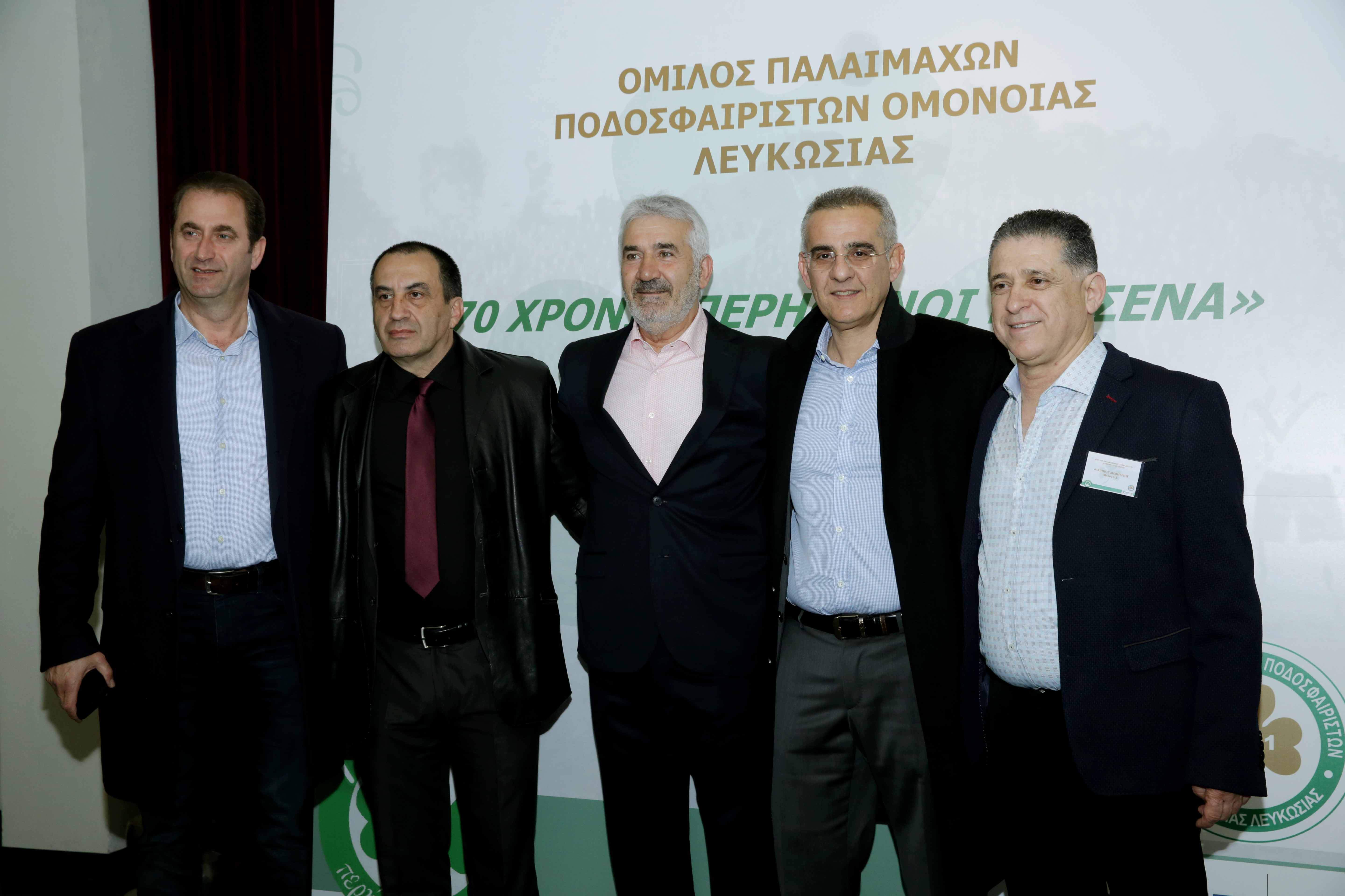 Η εκδήλωση του Ομίλου Παλαιμάχων της ΟΜΟΝΟΙΑΣ, υπό τον τίτλο: “70 χρόνια περήφανοι για ‘σένα”, στέφθηκε με απόλυτη επιτυχία. Το παρών τους έδωσαν παλαίμαχοι ποδοσφαιριστές, πρώην πρόεδροι, παράγοντες, στελέχη και συνεργάτες της ΟΜΟΝΟΙΑΣ, όπως και μέλη της Διοίκησης Σωματείου και Ποδοσφαιρικού Τμήματος. Το τελετουργικό ξεκίνησε με χαιρετισμούς, ενώ ακολούθησαν οι βραβεύσεις και το καλλιτεχνικό πρόγραμμα.