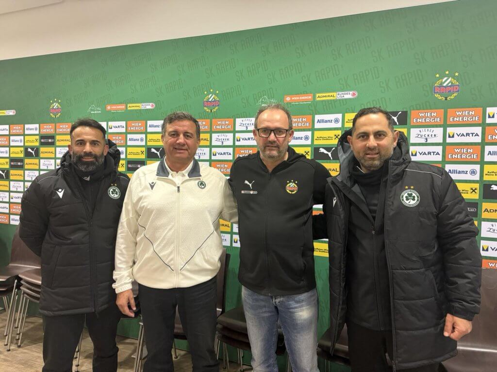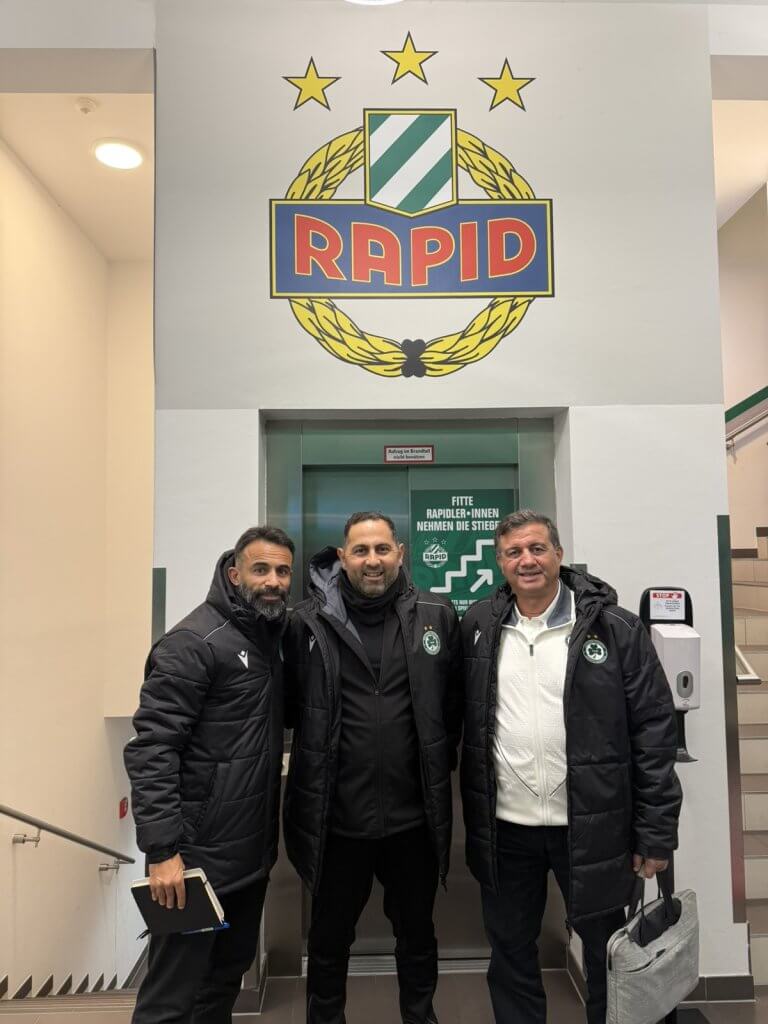 Στο πρόσφατο παιχνίδι της ομάδας μας με την Ραπίντ Βιέννης, ο Τεχνικός Διευθυντής Ακαδημίας, Χριστάκης Χριστοφόρου, ο Υπεύθυνος Μεθοδολογίας Ακαδημίας, Χάρης Καλλικάς, και ο προπονητής της Κ19, Γιώργος Ιωάννου, είχαν την ευκαιρία να συναντηθούν με τον Επικεφαλής της Ακαδημίας της Ραπίντ Βιέννης, Willi Schuldes.