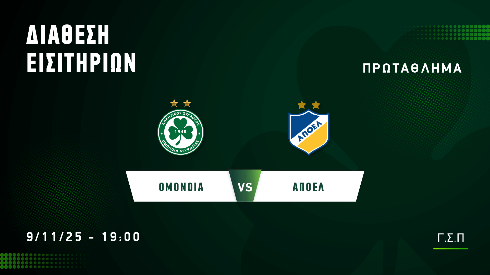 Από την Τρίτη, 4 Νοεμβρίου, στις 10:00, διατίθενται τα εισιτήρια του εντός έδρας αγώνα με τον ΑΠΟΕΛ για την 10η αγωνιστική του πρωταθλήματος, ο οποίος θα διεξαχθεί την Κυριακή, 9 Νοεμβρίου στο στάδιο ΓΣΠ και θα αρχίσει στις 19:00.