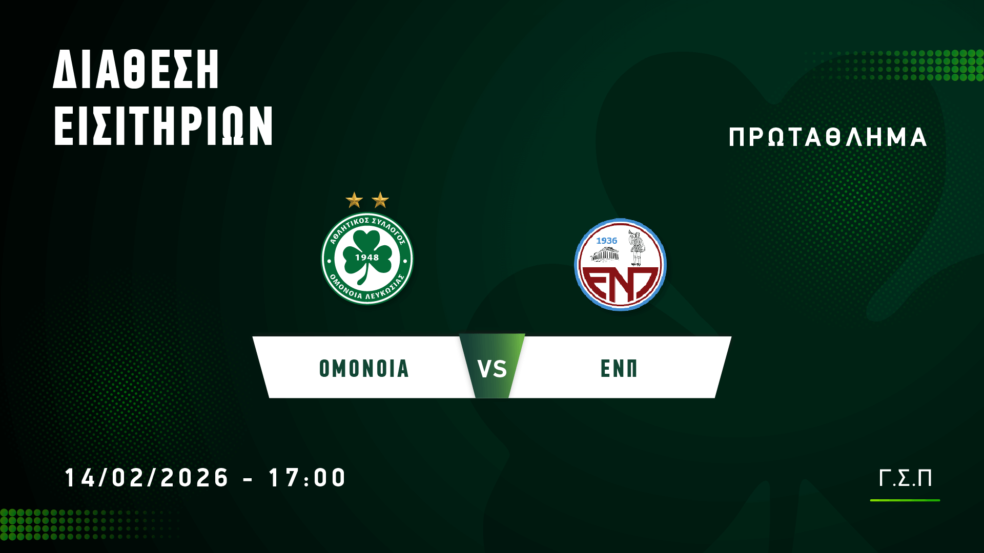 Από την Τετάρτη 11 Φεβρουαρίου, στις 10:00, διατίθενται τα εισιτήρια του αγώνα με την ΕΝΠ, που θα διεξαχθεί το Σάββατο, 14 Φεβρουαρίου, στις 17:00, στο πλαίσιο της 22ης αγωνιστική του πρωταθλήματος.