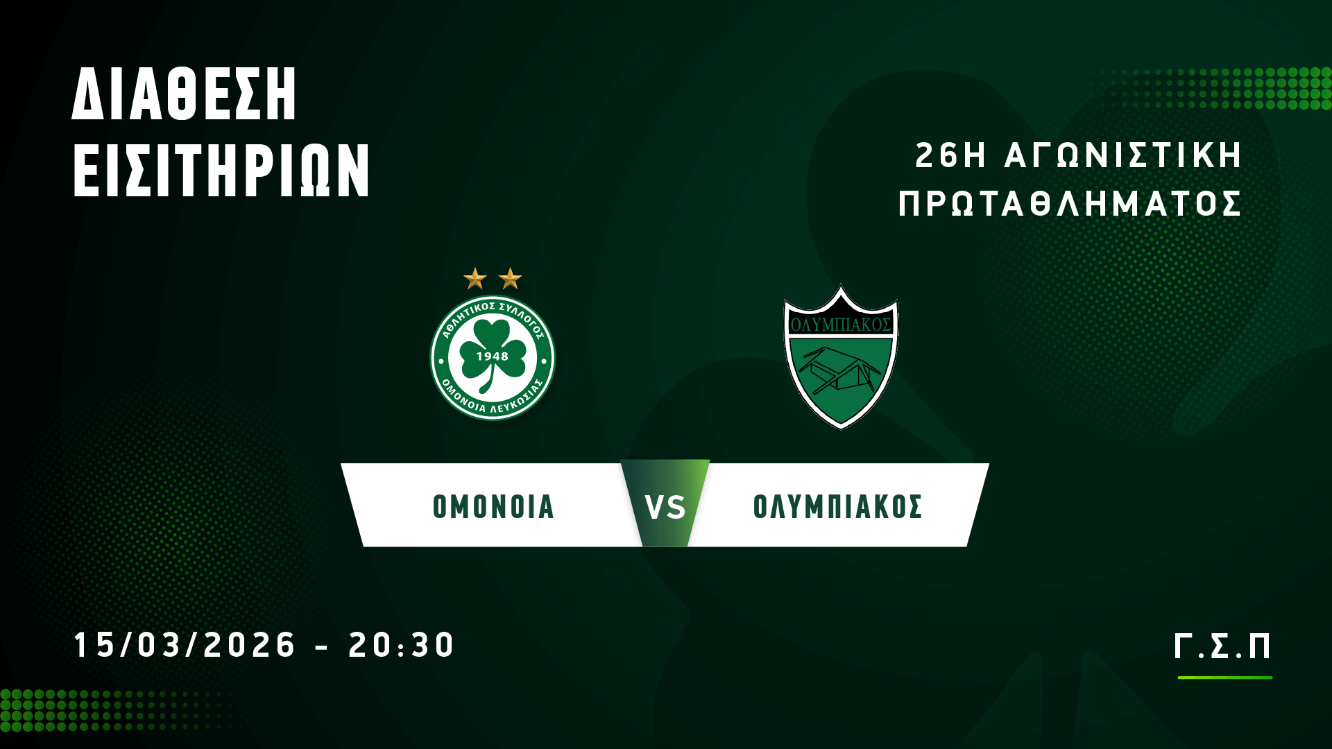 Κυριακή 15/03 ημέρα αγώνα | 19:00 – 20:30