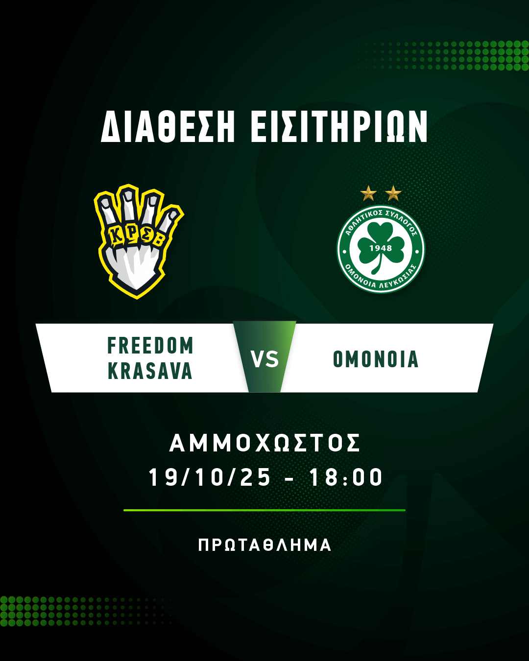 ΕΙΣΙΤΗΡΙΑ | Freedom24 Krasava Ε.Ν.Υ. – ΟΜΟΝΟΙΑ (19.10, 18:00)