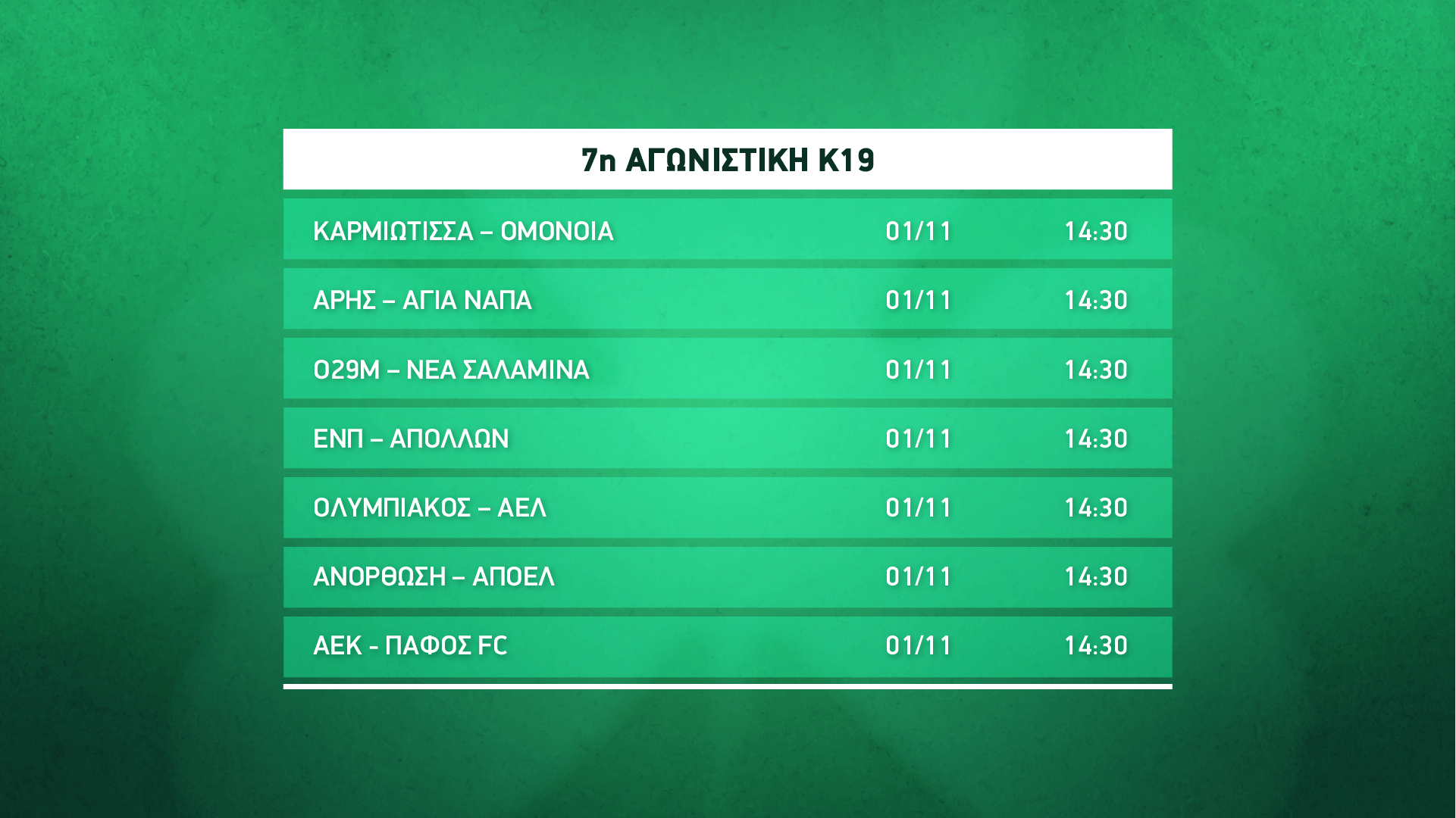 Ολόκληρη η αγωνιστική στα Κ19: