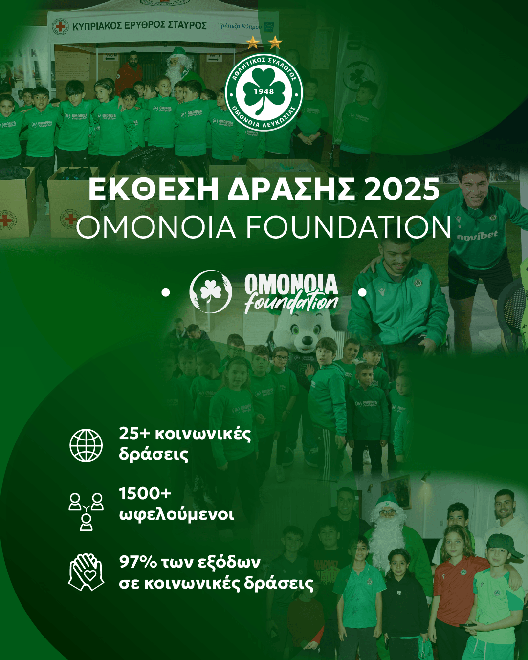 Η πλήρης Έκθεση Δράσης (Impact Report) του OMONOIA Foundation για το 2025 είναι διαθέσιμη στον ακόλουθο σύνδεσμο: https://omonoiafoundation.com.cy/el/impact-2025