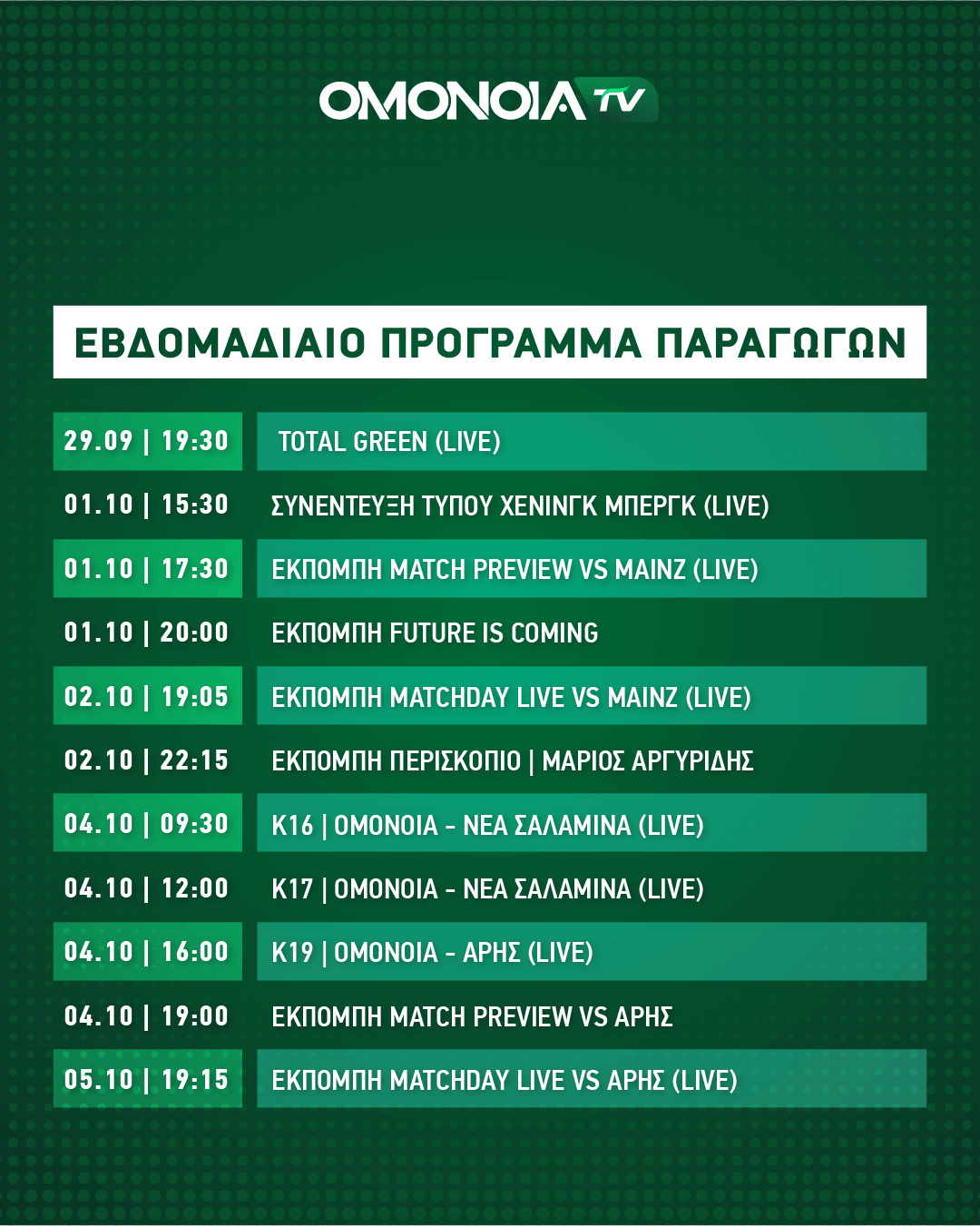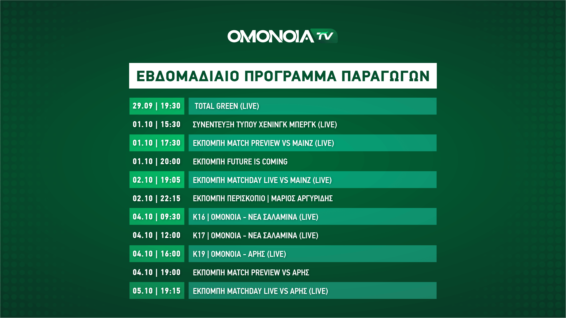 Όλα όσα θα παρακολουθήσετε αυτή την εβδομάδα από το κανάλι μας, ΟΜΟΝΟΙΑ TV.