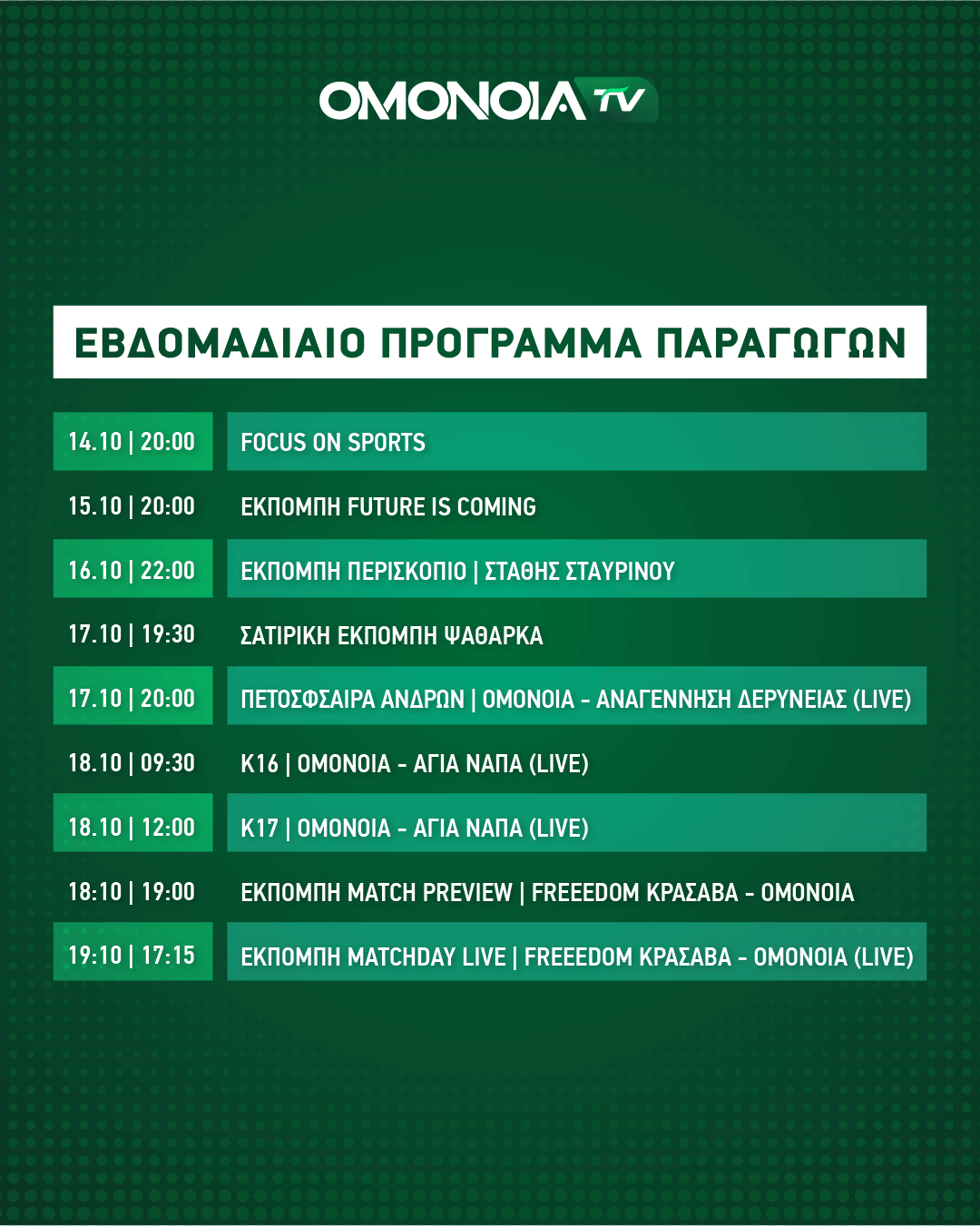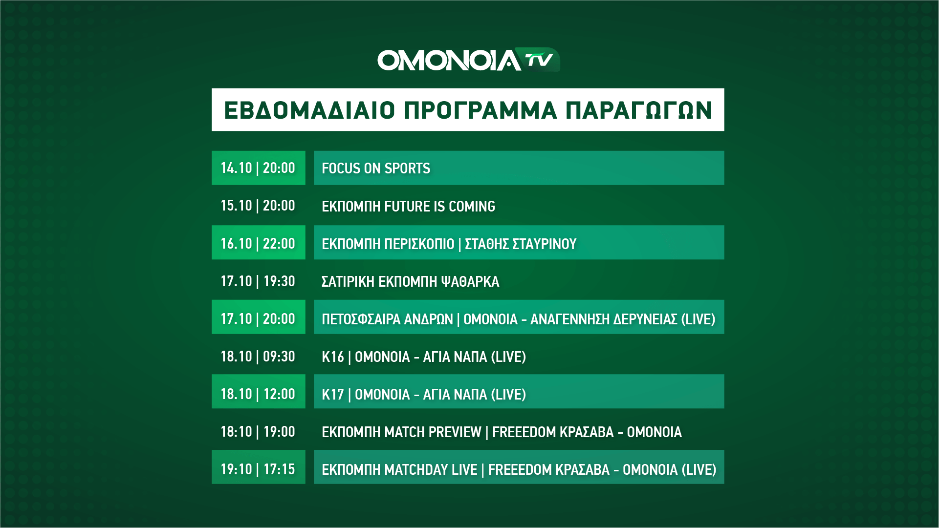 Όλα όσα θα παρακολουθήσετε αυτή την εβδομάδα από το κανάλι μας, ΟΜΟΝΟΙΑ TV.